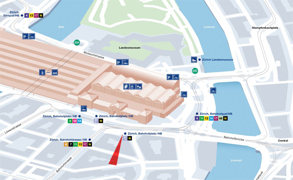 ab Zürich HB mit Bus 31 Richtung Kienastenwies bis Schlyfi. Die Haltestelle "Bahnhofplatz/HB" der Linie 31 befindet sich auf dem Bahnhofplatz gegenüber des Bahnhofgebäudes, links der Einmündung Bahnhofstasse vor dem McDonald's (siehe Übersicht Hauptbahnhof unten).