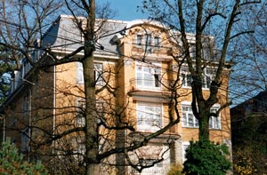 Sanfte Restaurierung von Originalverputz, Schindeln, Verandaverglasung und Sandsteinbeläge